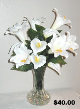 Prices vary by size, quality and quantity of the arrrangement. Those arrangements shown on this page range from 12" tall to 36" tall.