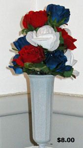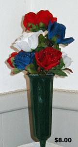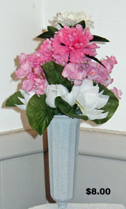The following arrangements are cemetary cone arrangements that stick into the ground - most cemetaries allow this type of arrangement. These sell for 8.00 each.