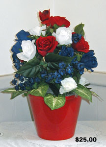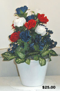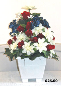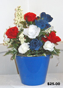The arrangements below can be used as a memorial at a gravesite or as patio pots.